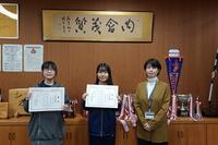 12月9日(火)、校長室にて令和7年度絆づくりメッセージコンクール表彰式を行いました。本校2年生阿部さんが最優秀賞、柴田さんが奨励賞を受賞し、上川教育局次長から賞状が授与されました。いじめのない学校をイメージして作品を作りました。おめでてとうございます。