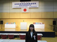 そこで、11月11日全国大会壮行会と全道大会優秀賞の表彰(表彰伝達式)を全校生徒の前で行いました。校長からと生徒を代表して生徒会長からの激励の言葉を受けとった斎藤さんは、11月16日に六本木ヒルズ(東京都港区)で、開催された全国大会で、北海道代表として立派に発表した結果、奨励賞をいただき帰路に着きました。斎藤さんからは「全国大会は、地区予選では経験できない責任を感じながらの生活体験発表となり、良い経験になりました。」とコメントがありました。9月からの2ヵ月間、よくがんばりました。