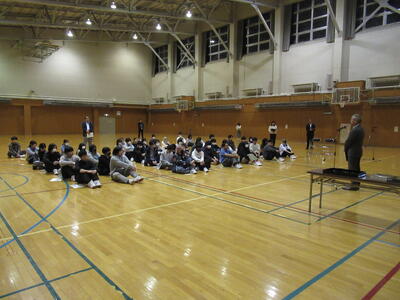 1校時に後期始業式があり、校長からは「物事の見方を変え肯定的にとらえることで、前向きな生活を送りましょう」と、お言葉がありました。