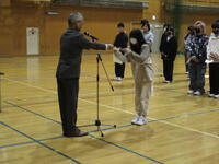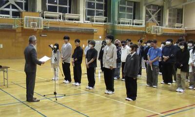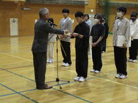 そして、定体連全国大会の伝達では2年生女子が、バトミントン個人戦3位入賞が伝えられ、その表彰を行いました。