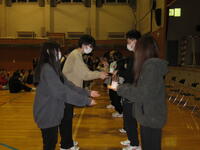 クラス対抗での競技は文化系、体育系の種目を織りまぜ、楽しく参加できるように工夫され、それぞれの健闘を応援しつつ、最後にはクラス全員参加の玉入れが行われました。最初はぎこちなかった動きも、最後には仲間と打ち解け、協力し合い、楽しい時を過ごしました。熱中しすぎて終了が予定より遅れましたが、クラスメイトの帰りのバス時刻を気にしながら、景品を分け合っている姿が見られました。生徒会執行部に協力してくれた生徒、先生に感謝します。