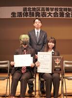 東高では、国語の授業で生徒全員が取り組んだ作文の中から選ばれた2名が大会に出場します。今回選ばれたのは1年斎藤さん「わたしが、はじまる」と4年佐藤さん「卓球台の傍で」です。当日、応援生徒達(全在学生)は、旭川市内の会場へ登校し、参加校6校全員の生活体験発表に耳を傾けます。審査の結果は斎藤さんが道北地区最優秀賞に選ばれ、全道大会への切符を手に入れました。2人とも、観客が引き込まれるような発表で、会場から惜しみのない感動の拍手をいただきました。ありがとうございました。