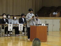 4校時に全校生徒が集まり令和7年度後期・8年度前期の生徒会を決める選挙を行いました。立候補した1~3年生の6名には責任者がつき、責任者から立候補者の紹介や推薦文が読み上げられた後、立候補者本人から、それぞれの生徒会役員への熱い思いや生徒会活動への意気込みが述べられました。信任投票の結果は全員当選となり、新しいメンバーが生徒会のスタートラインに立ちました。これからの生徒会の活躍に期待しましょう。